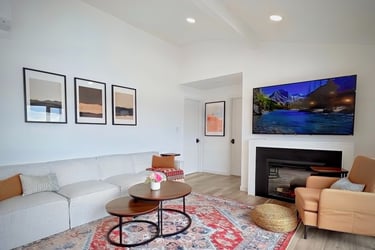 We had a great stay. The home is stylish and very comfortable. It’s also surprisingly baby friendly. I felt safe letting my one year old roam around the electric fireplace that stayed cool to the touch, low round coffee table, and cabinets that were easy for adults to open but hard for him to. We brought our own pack n play and high chair though. And the kitchen has most everything you would need, but bring a big pot or pan if you plan on cooking for more than two. There were lots of board games, Snuggies, and great little mini soaking tub for a cozy fun fall weekend. The bath products felt special and smelled nice. I recommend!